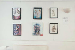 Her personal work explores the body and portraiture often with a sombre, feminine pallete. She enjoys toying with an uncommon standard of androgynous and feminine beauty, by creating layered and distorted portraits and figures, sometimes painted in soft, floral colours, or drawn with fluid and technical precision.